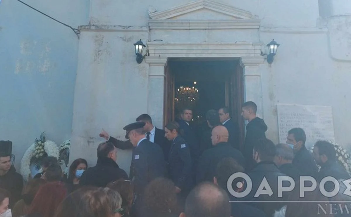 Το φέρετρο του επισμηναγού έφτασε στην εκκλησία τυλιγμένο με την ελληνική σημαία. Eνώ την ίδια στιγμή άγημα της Αεροπορίας