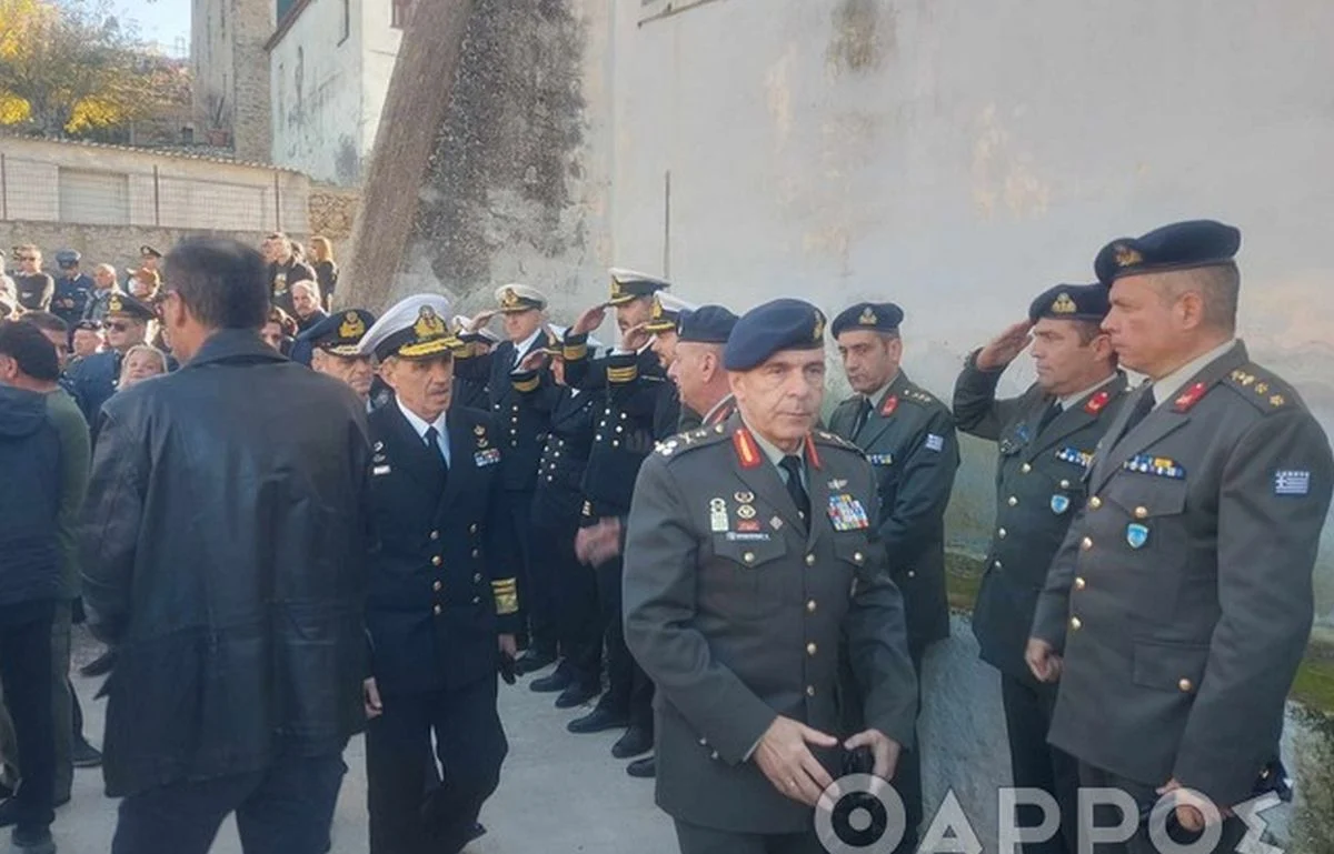 Το παρών στο Ιερό Ναό Κοιμήσεως της Θεοτόκου έδωσε ο υπουργός Εθνικής Άμυνας Νίκος Δένδιας, ο αρχηγός ΓΕΕΘΑ Κωνσταντίνος Φλώρος. Και ο Τομεάρχης ‘Αμυνας του ΣΥΡΙΖΑ Ευάγγελος Αποστολάκης.