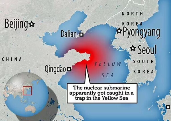 Όπως αναφέρει η Daily Mail, οι βρετανικές μυστικές υπηρεσίες επιβεβαίωσαν το ατύχημα με κινεζικό πυρηνικό υποβρύχιο, το οποίο εγκλωβίστηκε σε παγίδα που προοριζόταν για βρετανικά σκάφη, στην Κίτρινη Θάλασσα, ανάμεσα σε Νότια Κορέα και Κίνα.