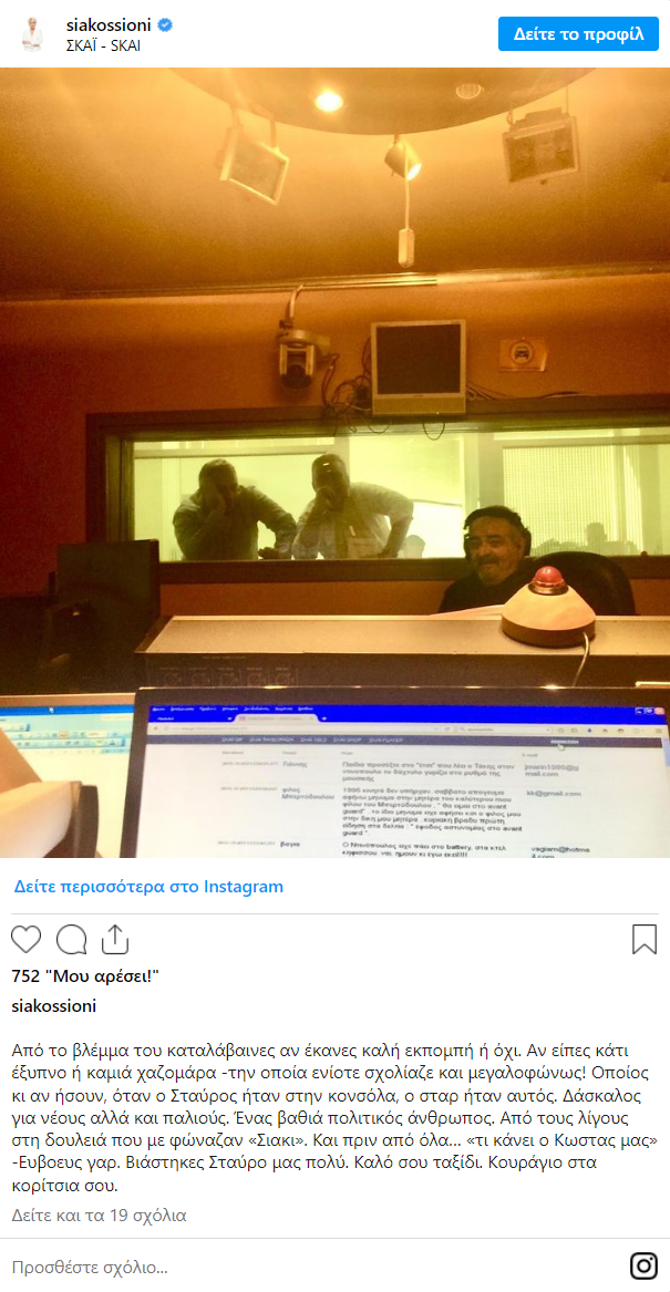 Θρήνος για τη Σία Κοσιώνη: Από το βλέμμα του καταλάβαινες…» – Μια θλιβερή μέρα ξημέρωσε την Τετάρτη 3 Ιουλίου για τους εργαζόμενους του ΣΚΑΪ, καθώς την προηγούμενη ημέρα, Τρίτη 2 Ιουλίου, έχασαν έναν πολύτιμο συνεργάτη τους. Η Σία Κοσιώνη, μεταξύ άλλων, τον αποχαιρέτησε με μια συγκινητική ανάρτηση στο Instagram.