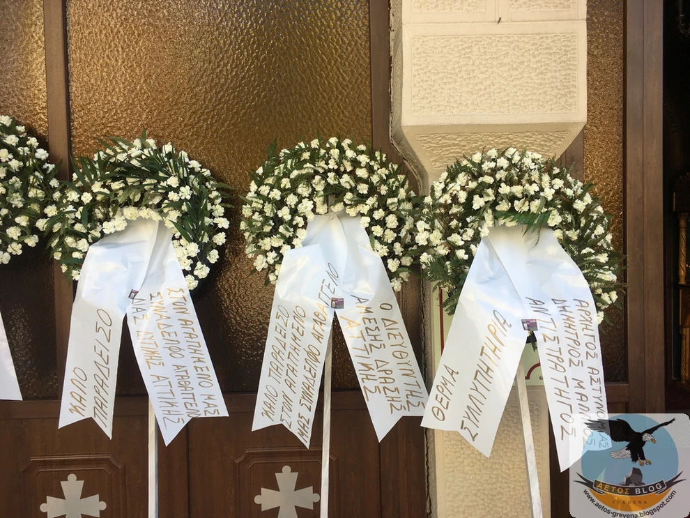 Δεκάδες στεφάνια, κατέκλεισαν από νωρίς την Εκκλησία, αν και η επιθυμία της οικογένειας ήταν αντί για στεφάνια, να διατεθούν τα χρήματα στο γηροκομείο Γρεβενών.