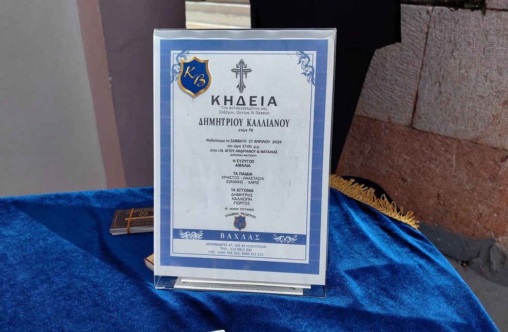 Η κηδεία του Δημήτρη Καλλιάνου έγινε στην γενέτειρά του μάλιστα, στον Ιερό ναό των Αγίων Αδριανού και Ναταλίας στο Δρέπανο Αργολίδας, λίγο έξω από το Ναύπλιο, το απόγευμα του Σαββάτου 27 Απριλίου 2024.