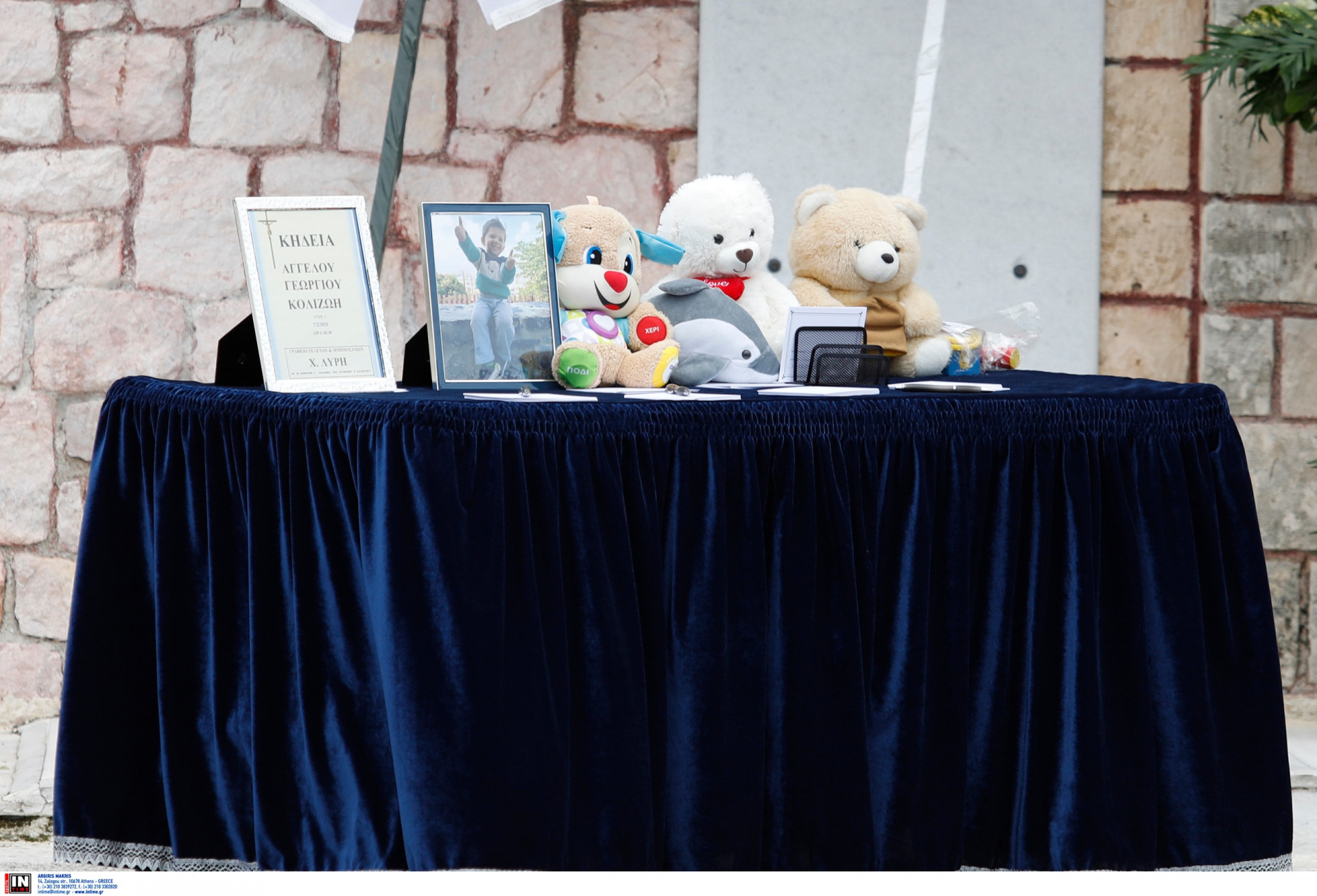 Πάνω στο λευκό φέρετρο είχαν τοποθετηθεί λευκά τριαντάφυλλα, ενώ δίπλα στο βιβλίο συλλυπητηρίων βρισκόταν ένα μικρό αρκουδάκι, το αγαπημένο παιχνίδι του παιδιού. Μια σπρακτική εικόνα που αποτύπωνε την αθωότητα που χάθηκε τόσο πρόωρα.