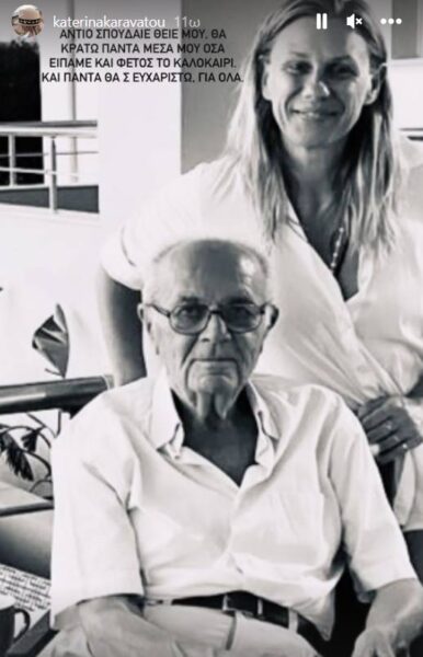 «Αντίο σπουδαίε θείε μου. Θα κρατώ πάντα μέσα μου όσα είπαμε και φέτος το καλοκαίρι. Και πάντα θα σε ευχαριστώ. Για όλα», έγραψε η Κατερίνα Καραβάτου σε instagram story ανεβάζοντας μια ασπρόμαυρη φωτογραφία με τον θείο της.