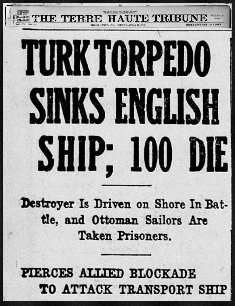 Ναυάγιο_DemirHisar Δημοσίευμα της εφημερίδας της Ινδιάνα (ΗΠΑ) The Terre Haute Tribune.