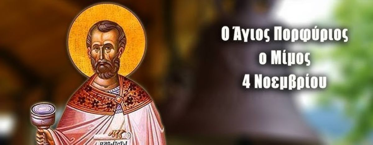 Ο Άγιος Πορφύριος έζησε στα χρόνια του αυτοκράτορα Αυρηλιανού (περί το 270 μ.Χ.). Καταγόταν από την Έφεσο της Μικράς Ασίας και, μεγαλώνοντας, εξασκούσε την τέχνη του μίμου στο θέατρο. Όπου συχνά διακωμωδούσε τις χριστιανικές συνήθειες και τελετουργίες.