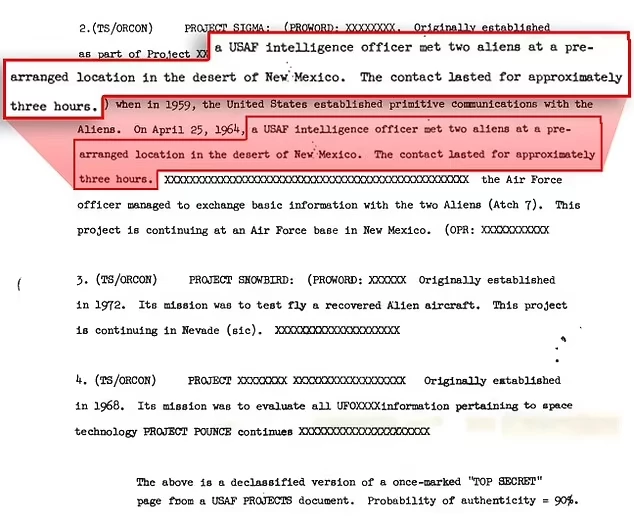 Όπως αναφέρει η Daily Mail, η συνάντηση του 1964 αποτέλεσε τον καταλύτη για τη δημιουργία του Project Snowbird το 1972, ενός προγράμματος με στόχο την εξέταση και δοκιμή ανακτημένων εξωγήινων σκαφών. Η αναφορά υποστηρίζει ότι αυτό το έργο συνεχίζεται μέχρι σήμερα σε μια άκρως μυστική τοποθεσία στη Νεβάδα, την οποία πολλοί ερευνητές UFO πιστεύουν ότι είναι η περίφημη Περιοχή 51.