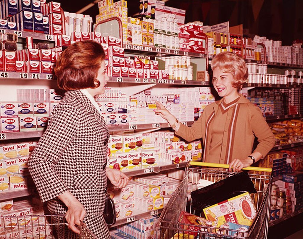 Μέχρι το 1962, κυριαρχούσαν τα παραδοσιακά παντοπωλεία της γειτονιάς, όπου οι αγορές γίνονταν χύμα και υπήρχε προσωπική σχέση με τον παντοπώλη.
