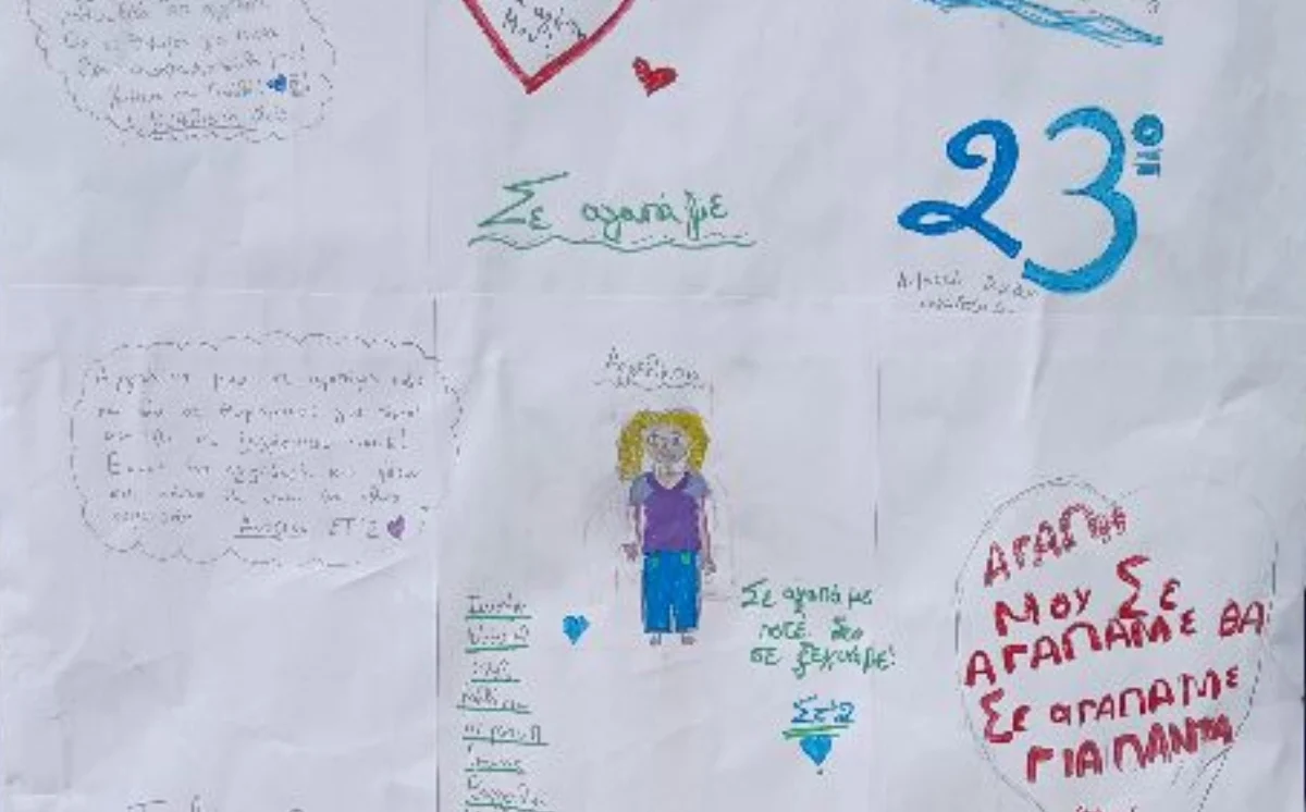 Συγκινητική ήταν η πράξη των συμμαθητών της από το 23ο Δημοτικό Καλλιθέας. Οι οποίοι σχημάτισαν το όνομά της στην αυλή του σχολείου με τις τσάντες τους και ζωγράφισαν μηνύματα αγάπης.