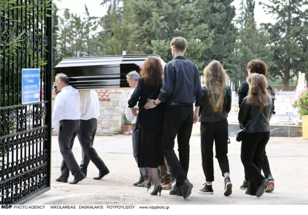 Από τους πρώτους που βρέθηκαν στο Κοιμητήριο Παιανίας, ήταν τα παιδιά και η πρώτη σύζυγος του ηθοποιού, Δέσποινα Παπαθανασίου.