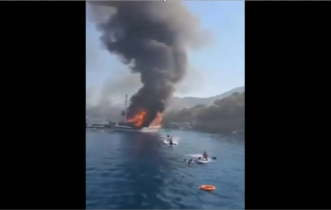 BREAKING: A tourist yacht carrying 110 people sank off the coast Marmaris, Turkey after catching fire.