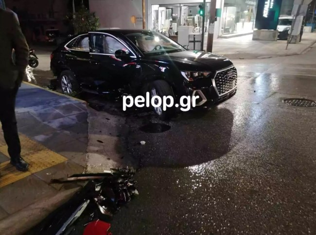Σύμφωνα με τo pelop.gr, η μηχανή παραβίασε τον κόκκινο σηματοδότη και έπεσε πάνω σε Ι.Χ.