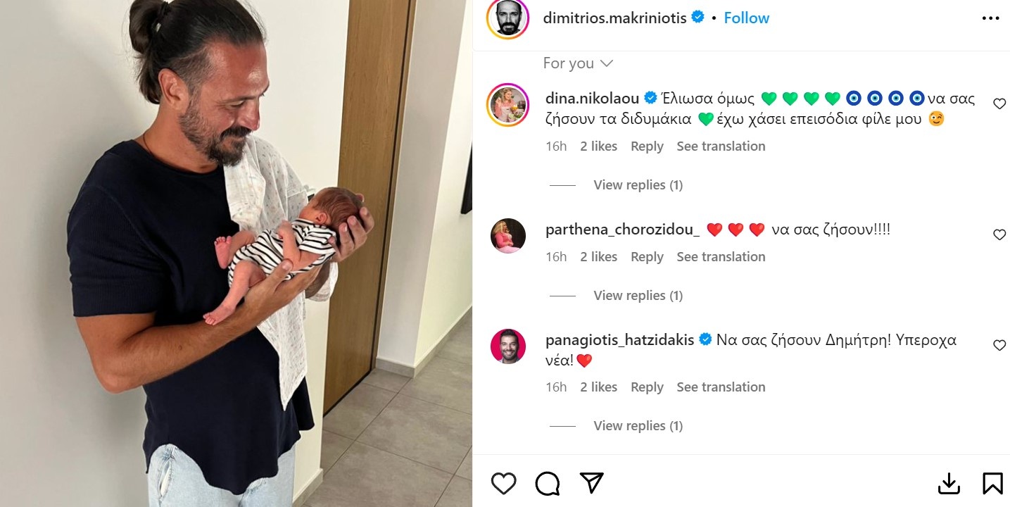 Οι ακόλουθοί του εξέφρασαν μάλιστα τη χαρά τους με πολλά likes και σχόλια.