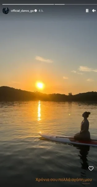 Ο Γιώργος Αγγελόπουλος κοινοποίησε μια φωτογραφία της γυναίκας του που βρίσκεται πάνω σε sup και της ευχήθηκε και διαδικτυακά μέσα από τον προσωπικό του λογαριασμό στο instagram: «Χρόνια σου πολλά αγάπη μου».