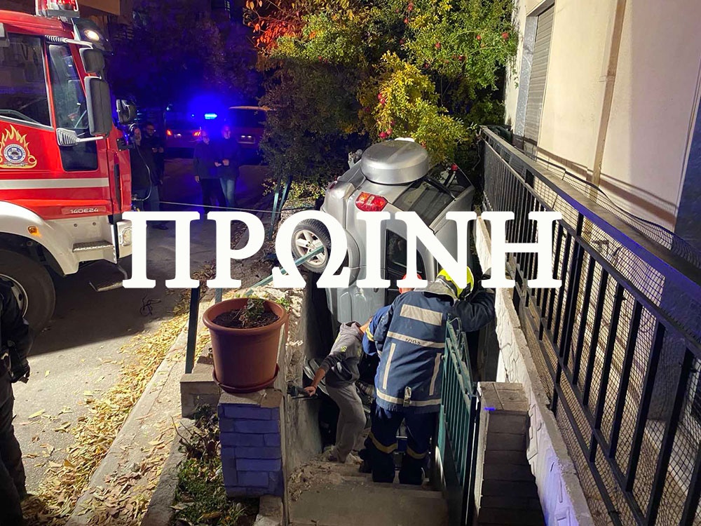 Τροχαίο σοκ στην Καβάλα με αυτοκίνητο που απογειώθηκε από το δρόμο και σφηνώθηκε σε 3οροφο σπίτι