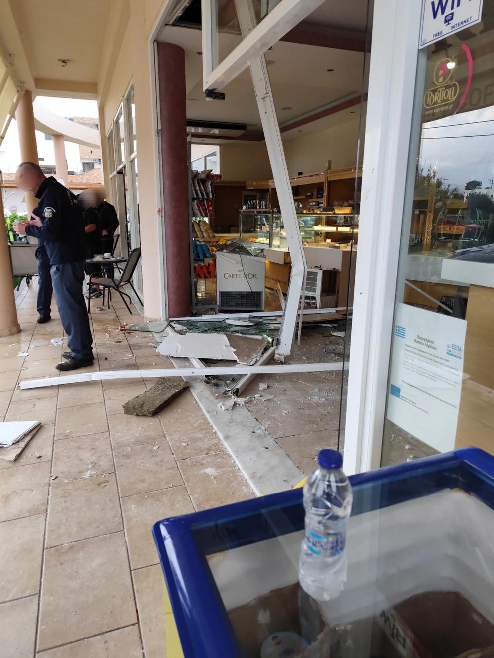 Οι σκηνές στο σημείο ήταν σοκαριστικές… Θρυμματισμένη τζαμαρία, διαλυμένοι πάγκοι και θραύσματα παντού, μαρτυρούν τη σφοδρότητα της σύγκρουσης. Το τζιπ, που οδηγούσε ο 50χρονος χωρίς δίπλωμα οδήγησης, εισέβαλε με ταχύτητα στο κατάστημα, παρασύροντας τους τουρίστες για περίπου τέσσερα μέτρα. Το ζευγάρι καθόταν αμέριμνο σε τραπεζάκι κοντά στην είσοδο του φούρνου.