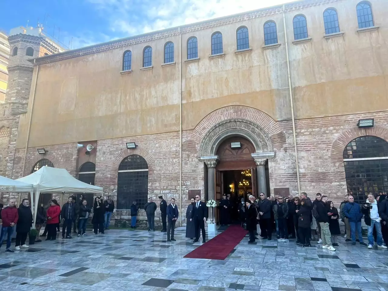 Το προαύλιο, όπως και οι δημόσιοι χώροι γύρω από τον Ιερό Ναό, έχουν κατακλυστεί από χιλιάδες θαυμαστές του Βασίλη Καρρά που αναμένουν στη σειρά.