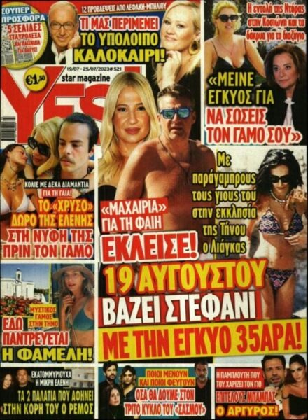 Συγκεκριμένα, το περιοδικό «YES», κυκλοφορεί με τίτλο: «Η εντολή της Ντόρας στην Κοσιώνη και τα δάκρυα για το διαζύγιο» – «Μείνε έγκυος να σώσεις το γάμο σου!»
