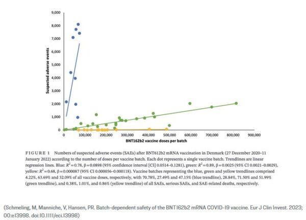 Η νέα μελέτη δείχνει ότι μόλις, το 4,2% των παρτίδων εμβολίων Pfizer για τον COVID-19 είχαν τα περισσότερα ανεπιθύμητα συμβάντα. Εγείροντας, μάλιστα, σοβαρές ανησυχίες! Ωστόσο στη Δανία, αυτό το 4,2% των παρτίδων εμβολίων της Pfizer COVID-19… Αντιπροσώπευαν το 71% των ύποπτων ανεπιθύμητων ενεργειών (SAEs), σύμφωνα με Δανούς ερευνητές σε πρόσφατη μελέτη. Η οποία δημοσιεύτηκε, μάλιστα και στο European Journal of Clinical Investigation στις 30 Μαρτίου.