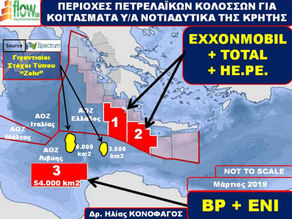 Είναι γνωστό ότι παγκόσμιοι πετρελαϊκοί κολοσσοί όπως ExxonMobil, Total, ENI και ΒP, οι οποίοι με τον έναν ή τον άλλο τρόπο ενεπλάκησαν στην περιοχή μας –νοτιοδυτικά της Κρήτης– είχαν δηλώσει πριν λίγα χρόνια σε διεθνές συνέδριο… «Δεν προσερχόμεθα εδώ στην περιοχή (Λιβύη) για να ανακαλύψουμε κάτι μικρό σε μέγεθος… δεν μας ενδιαφέρει κάτι μικρό σε μέγεθος… Είμαστε εδώ διότι διαθέτουμε την απαραίτητη τεχνολογία και τα αναγκαία κεφάλαια, ώστε να ανακαλύψουμε κάτι πολύ σημαντικό σε μέγεθος».