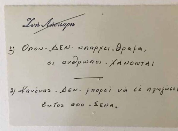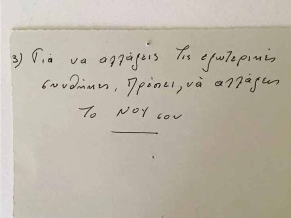 Η κόρη της Ζωής Λάσκαρη είχε δημοσιεύσει, λοιπόν, κάποια χειρόγραφα της μητέρας της… Που δείχνουν τον τρόπο που σκεφτόταν και φιλοσοφούσε τη ζωή.