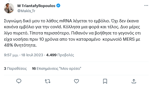 Αντιδράσεις προκάλεσε η τοποθέτηση – ‘βόμβα’ του γνωστού δημοσιογράφου Μάκη Τριανταφυλλόπουλου για τον κορωνοϊό και το εμβόλιο…