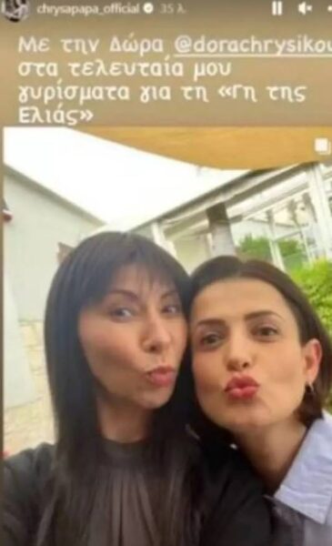Συγκεκριμένα, δημοσίευσε σε story ένα στιγμιότυπο, στο οποίο πόζαρε δίπλα στη συμπρωταγωνίστριά της, Δώρα Χρυσικού.